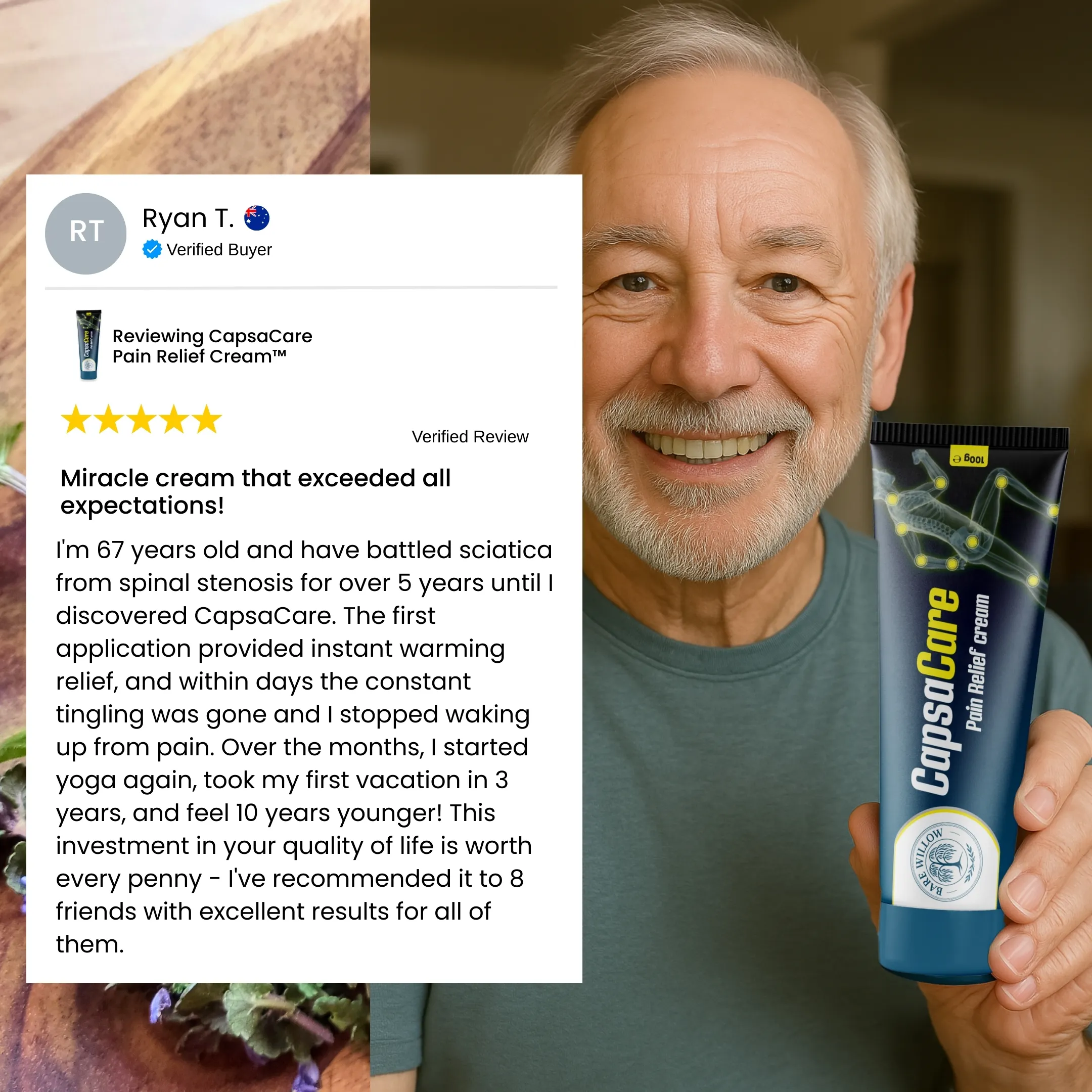 Created for convenient at-home use, CapsaCare™ is ideal for people who experience daily muscle tightness, stiffness, or general body discomfort from activity, long hours, or lifestyle strain.