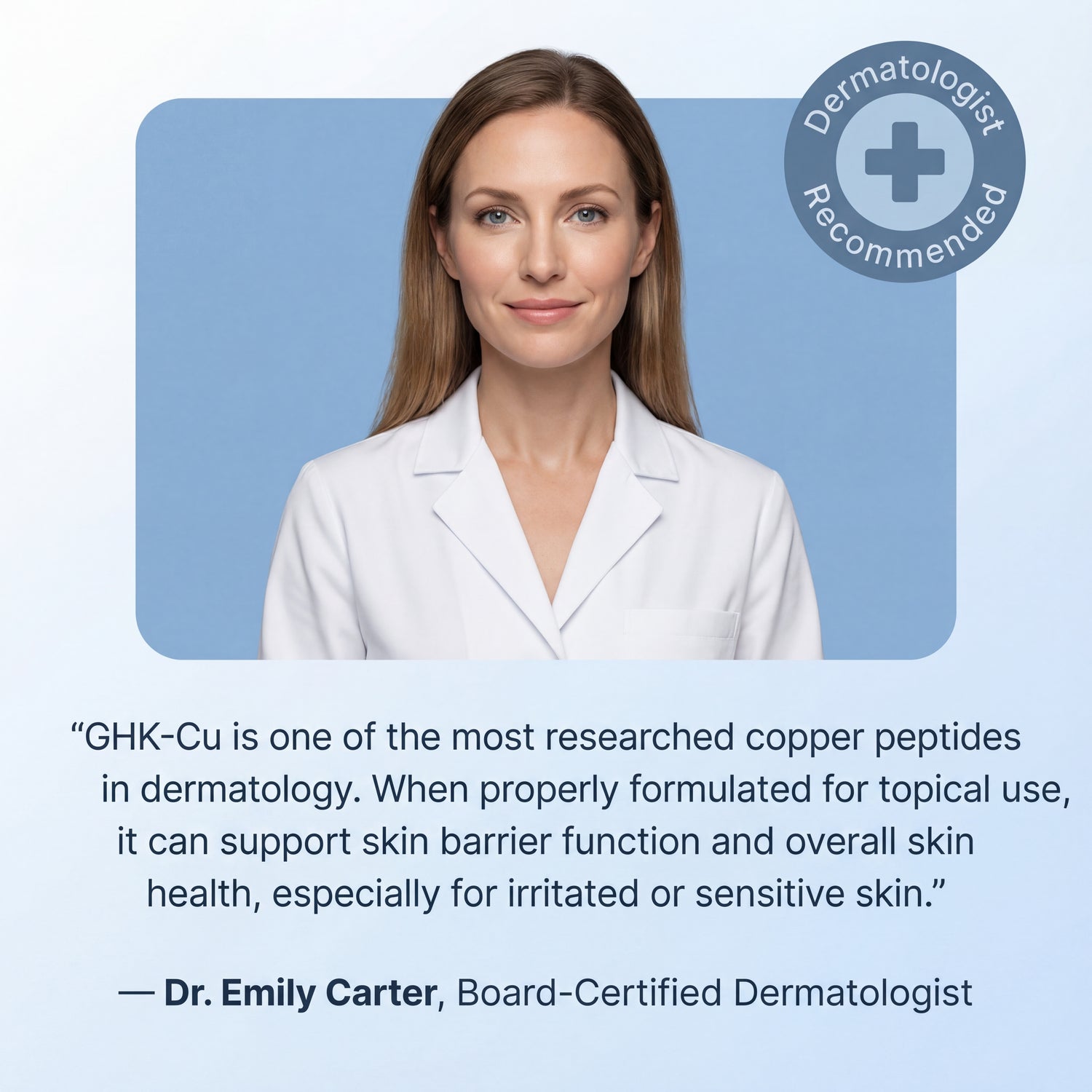 Backed by dermatological research, GHK-Cu is known for supporting skin barrier health and overall skin appearance when used in a well-balanced topical formula — without aggressive actives or irritation.