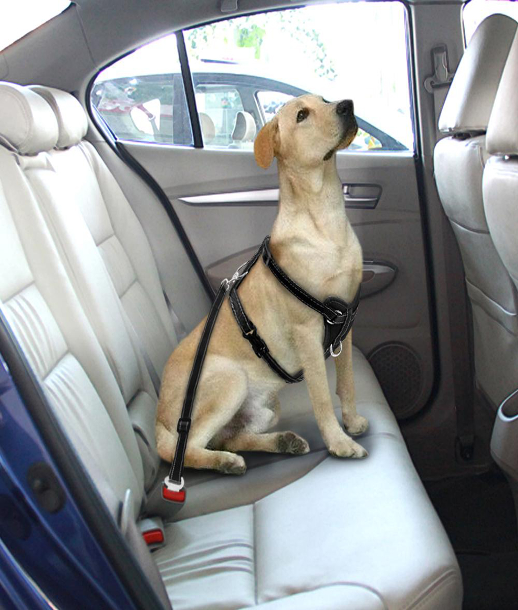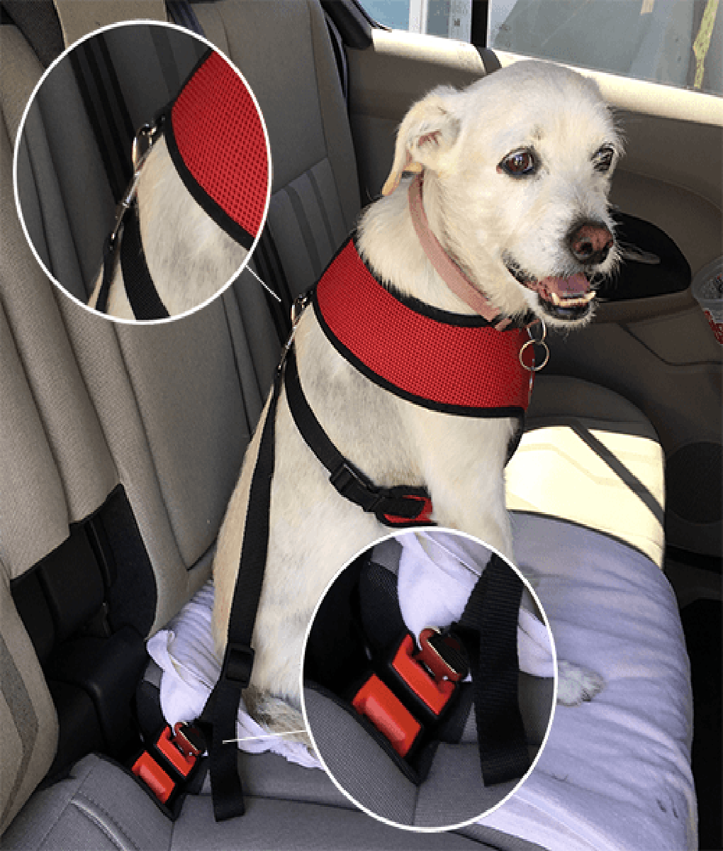 It keeps them secure without being confined to a kennel. Strapped safely into your vehicle’s seat belt device, your dog can travel while enjoying the scenery!