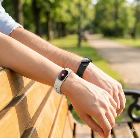 The M12 Bio-Rhythm Band™ uses a gentle micro-pulse system inspired by clinical EMS & acupoint stimulation research to support better airflow during sleep and encourage a more active nightly rhythm — without pills, machinery, or invasive methods.