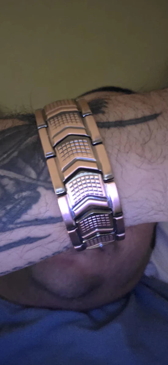 A stylish magnetic copper bracelet crafted for daily wear, designed to combine classic masculine style with the supportive comfort of magnetic elements. It’s built for those who want a piece that looks good, feels good, and adds a touch of wellness-focused balance to their routine.