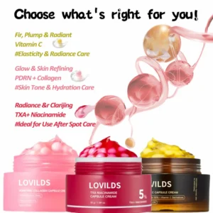 LOVILDS’ TikTok-viral capsule creams stand out because they’re designed to support brighter, smoother-looking skin through a customizable, mix-and-match routine. One set, three capsules, multiple concerns — all in one place.
