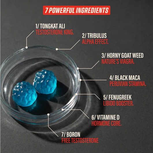 Fenugreek & Tribulus: Ignites libido and supports muscle recovery.