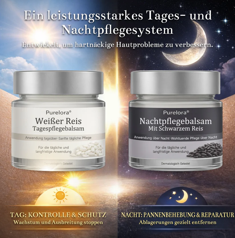 Thatโs why we created the Pureloraยฎ Black & White Rice Day & Night Dual Repair Cream โ a two-step skincare system designed to support smoother, calmer, and more radiant-looking skin around the clock.