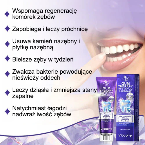 Rolimeyยฎ VioCore is a toothpaste designed for adults who want a more advanced, targeted approach to daily oral care. Its formula features bee-venomโ€“derived ingredients and gentle botanicals to help keep the mouth clean, fresh, and cared for during brushing โ€” without harsh foaming agents or strong chemicals.