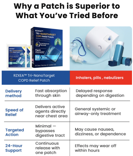 “Years of construction dust gave me COPD. Breathing was a struggle, and I was constantly wheezing. After one week with the RZXEA™ patch, my nights became peaceful. By week 7, my coughing and chest pain had completely disappeared. My doctor confirmed reduced inflammation and I finally feel energetic again. This product truly transformed my life.” — Verified User Review