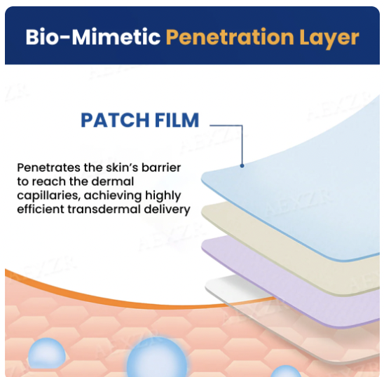 Unlike traditional patches that lose ingredients on the skin’s surface, RZXEA™ uses a bio-mimetic delivery system: