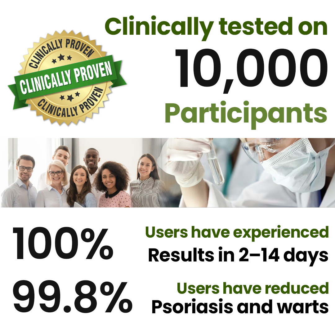 It treats the shared root causes of both psoriasis plaques and stubborn warts — safely, at home, and without discomfort.